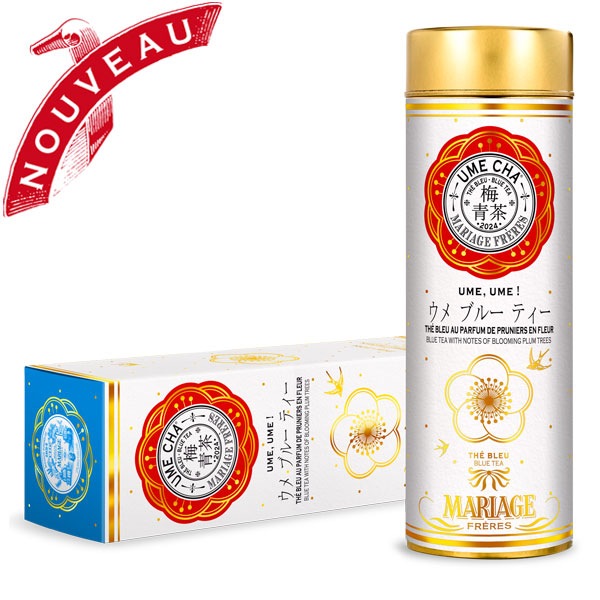これから新たなヴィンテージで季節を詩的に彩ることでしょう。今年のUME CHA 2024®は、魅惑的なフローラル フレーバーで寒さの残る初春に温かみを添えるブルー ティー。まろやかで優美なノートが心地よく夢の世界へと誘い、ティーカップに注ぐと晴天の青空のようなブルーの水色の輝きを放ちます。