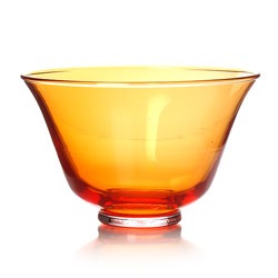 きわめて薄い吹きガラスを、ニュアンスに富む燃え立つトーンで彩色した全く新しいティー カップ。