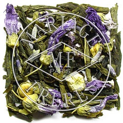 やさしいスパイスと白い花の香りがつけられたこの緑茶には、印象派のインディゴブルーの空を想起させるモーブの花びらが散りばめられ、口の中を魅了する輝かしく力強い芳香を思い出させます。