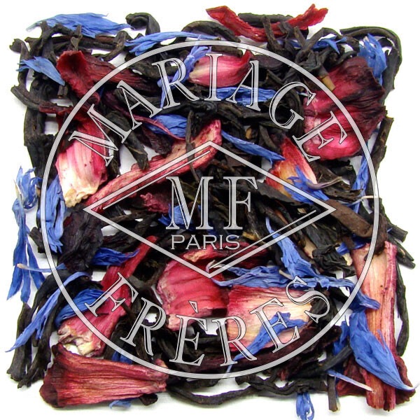 マリアージュ フレールが彼に捧ぐのは、ハイビスカスの花の香りにブルーエの花びらを散りばめた優しく魅惑的な紅茶。
